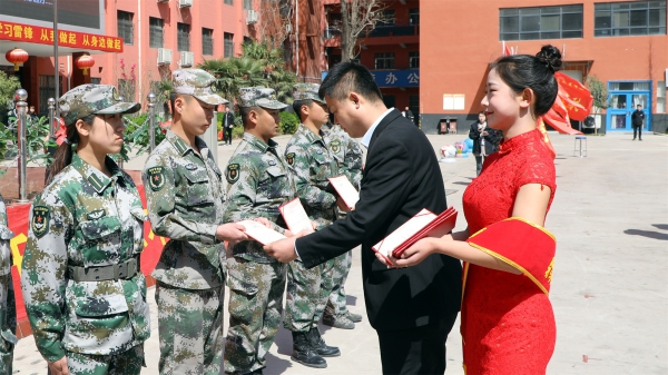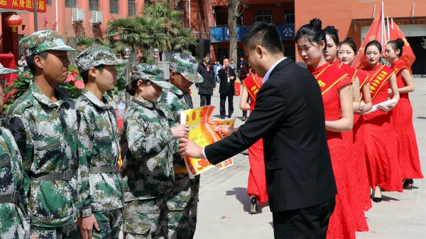3月23日上午,我校2019級春季班新生軍訓(xùn)匯報表演在啟智廣場隆重舉行,學(xué)校校長王景輝,中國人民解放軍中部戰(zhàn)區(qū)駐鄭州某部隊首長任強同志,副校長劉振、張海峰、蔡文龍、葛凡、劉新剛、孫東娟,相關(guān)職能部門負責(zé)同志及班主任出席并觀看了匯報演出。副校長劉振主持匯演。