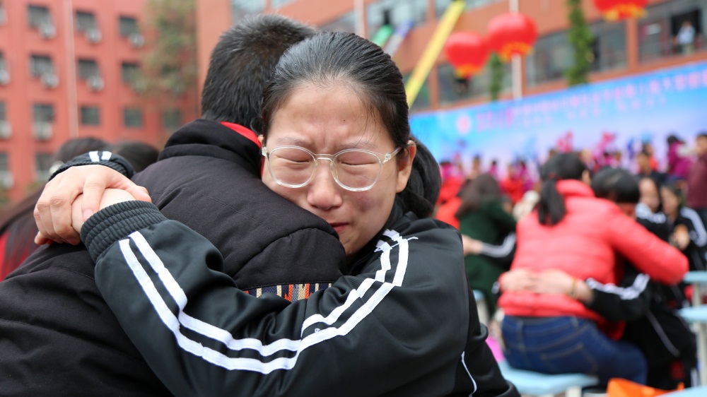學(xué)生為母親擦拭眼淚