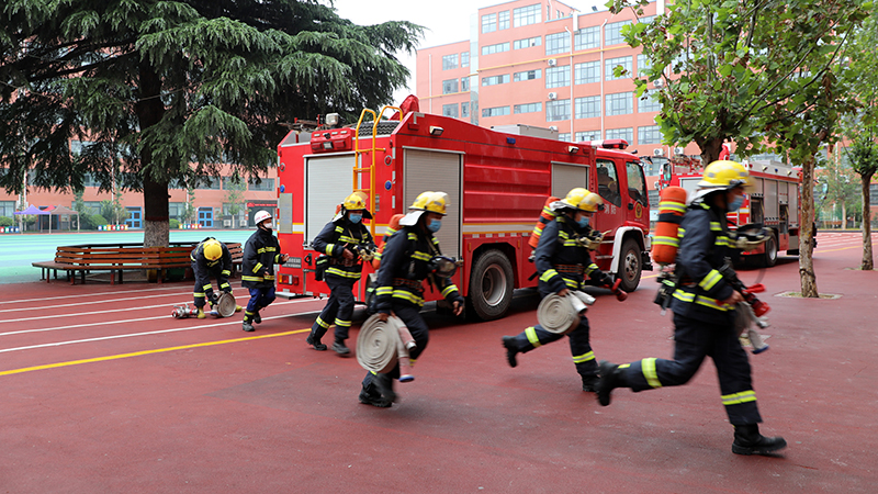 為增強校園師生消防安全意識,提升學校師生應(yīng)對突發(fā)事件能力和抵御火災(zāi)能力,筑牢校園消防安全“防火墻”,7月17日,鄭州市消防支隊惠濟大隊頤和站消防官兵走進我校開展了消防培訓演練活動,出動數(shù)輛不同類型消防車,參加演練消防官兵10人。