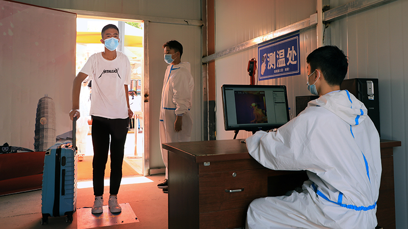 進(jìn)入宿舍前再次登記測溫