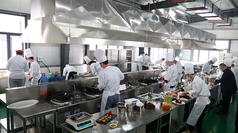 為取得優(yōu)異賽事成績,學(xué)校領(lǐng)導(dǎo)高度重視,高級烹飪系精心準(zhǔn)備,從遴選參賽選手、賽前認(rèn)真集訓(xùn)、賽中沉著應(yīng)賽;校長王景輝親自率隊(duì),帶領(lǐng)李海兵、李曉勇、鞏軒等7名老師,以及12名學(xué)生分別參加了職工組、學(xué)生組比賽,與來自全省的近400名選手同臺競技。參賽師生將高超廚技發(fā)揮的淋漓盡致,用實(shí)力與激情奉上一場精彩紛呈的饕餮盛宴。經(jīng)過兩天緊鑼密鼓的比賽,他們憑借嫻熟的專業(yè)技能,在眾多參賽選手中脫穎而出。