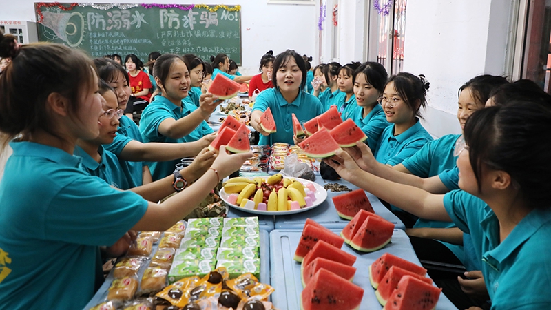 學(xué)校為師生準(zhǔn)備了大量的粽子、雞蛋、火腿腸、面包、飲料等節(jié)日福利,在主題班會中,師生們歡聚一堂,學(xué)習(xí)有關(guān)端午節(jié)的民風(fēng)習(xí)俗、講屈原故事,品嘗美食、系五彩繩,展示才藝、一起享受傳統(tǒng)佳節(jié)里的濃濃粽香和師生溫情。